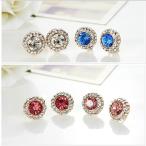 ラインストーンイヤリング スワロフスキーイヤリング 丸いボタンサークル 成人式結婚式二次会パーティ クリアローズサファイアブルー |