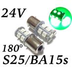 24V用 LED S25 シングル球 13連 2個セット 新品未使用 発光色:グリーン 3チップ5050SMD13連(39連相当) 180°平行ピン(BA15S) 口金直径15mm 全長41mm 全幅19mm 一般的なマーカーでしたら取り付け可能です。 ルームランプ、ナンバー灯 等にも。