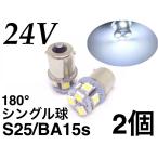 24V用 LED S25 シングル球 8連 2個セット 新品未使用 発光色:ホワイト 3チップ5050SMD8連(24連相当) 180°平行ピン(BA15S) 口金直径15mm 全長35mm 全幅19mm 一般的なマーカーでしたら取り付け可能です。 ショートタイプですので取り付けスペースの狭いナンバー灯でも大丈夫です。