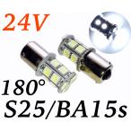 24V用 LED S25 シングル球 13連 2個セット 新品未使用 発光色:ホワイト 3チップ5050SMD13連(39連相当) 180°平行ピン(BA15S) 口金直径15mm 全長41mm 全幅19mm 一般的なマーカーでしたら取り付け可能です。 ルームランプ、ナンバー灯 等にも。