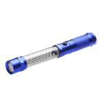 35LEDライト乾電池式 単4タイプは、乾電池で作動するLEDライトです。 底面には強力磁石付きでスチール面に吸着させて使用できる他、フックで引っかけての使用も可能です。 本体両端が6角で転がりにくくなっています。 [本体色] ブルー [LED数] 26(メイン)、9(サブ) [使用電池] 単4形×3(動作確認用電池付属) [全長] 230mm [重量] 130g(電池含まず) [連続使用時間] 約5時間(メイン使用時) [点灯パターン] サブ点灯⇒メイン点灯⇒消灯 |