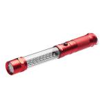 35LEDライト乾電池式 単4タイプは、乾電池で作動するLEDライトです。 底面には強力磁石付きでスチール面に吸着させて使用できる他、フックで引っかけての使用も可能です。 本体両端が6角で転がりにくくなっています。 [本体色] レッド [LED数] 26(メイン)、9(サブ) [使用電池] 単4形×3(動作確認用電池付属) [全長] 230mm [重量] 130g(電池含まず) [連続使用時間] 約5時間(メイン使用時) [点灯パターン] サブ点灯⇒メイン点灯⇒消灯 |