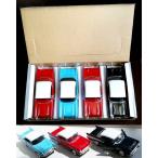 アメリカ直輸入1/241957 CHEVY BEL AIR 箱入りシルバーフレーム4台セットです (黒×2、水色×1、赤×1) 4台箱入りはレアだと思います。 箱の点線に沿って折れば什器になります。 ドア・ボンネット・トランク開閉します。 1台の重さ約500gで重量感もあり最高にかっこいいです! ※新品未使用ですがデッドストック商品の為、細かい傷・擦れ・色はげ・ゆがみ等ある場合がございます。 予めご了承の上でご購入下さい。