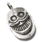 チベット仏教は、7世紀にインド・ネパールから伝えられた仏教(密教)と、西チベットを中心に広がっていたボン教とが結びついて発展したものである。 ラマ(師匠)を崇敬し、師弟関係を通じて教えが伝えられることから、ラマ教と呼ばれることもある。 チベタンスカルはチベット密教において儀式などで使用される法具の一つです。 チベット密教では人が死ぬと、魂は輪廻転生へ、死体は鳥葬され、残りの頭蓋骨の一部は職人により加工され装飾仏具として用いられています。 チベタンスカルは高僧の頭蓋骨に装飾を施すもので、カパーラ(頭骨杯)という聖杯の形に加工され、銀、ターコイズ、赤サンゴなどを使い豪華な装飾されています。 サイズ 幅:10.5mm、高さ:19mm、奥行き:9mm、穴直径:2.5mm 材質:シルバー925 |