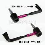 ブレーキレバー・クラッチレバーガードです。 カラー3色・左右別売となります。 対応ハンドル内径:φ14〜φ19 ※ninja250は純正ハンドルへボルトオン MFJレギュレーションにおいても推奨されている レバーガード(プロテクション)は、 接触等によりブレーキが作動しないよう、 レバーをガードする部品です。 様々なレバー長に対応するように約10°の範囲で調整が可能。 また、カラーもアルマイト仕上げによる3色展開で 幅広い車種にマッチいたします。 ブレーキレバー用の他、クラッチレバー用も展開しておりますので、 公道走行車でもバランス良くお使いいただけます。