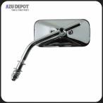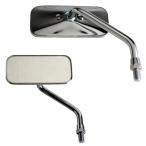汎用の長方形ミラーです。 ショートステムタイプで純正の大きなミラーから交換するだけでだいぶスッキリと見違えたスタイリングになります。 純正のスイッチボックスにそのまま取り付けられるお手軽さも魅力です。 左右兼用1小売り、クローム仕上げ。 適合車種:※ OEM/クロスリファレンス:※ 色:クローム 材質:スチール サイズ:ミラー部横約11.3mm、縦約56mm |