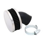 汎用パワーフィルター 取り付け口径35mm(34-36mm対応) 45度の角度付きタイプ キャブレター取り付けには115mmから120mm程度の空間が必要 カバー素材:メタル製 |