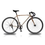 ホリゾンタルな細身のパイプフレームがスマートなシングルクロスバイク。 存在感のあるディープリムとストレートハンドルが先進的にデザインされています。 変速を気にせず手軽に気楽に乗れるのも魅力です。 踏み込んだ力がリニアに伝わる感覚は、シングルバイクならでは。 特別な長距離でもなければ、楽しさはシングルでも負けません。 日常になじむシンプルな外観と鮮やかなカラーリング。 風を切るディープリムには特別な魅力があります。 カスタムしてガラリと彩るのも面白いかもしれません。 スポーツバイクデビューから日常的な普段使いのセカンドバイクまで。 気楽に始めて、気軽に思いのままに走り出しましょう。 ■全長/1700mm ■重量(約)/12kg ■タイヤ/700×23C仏式バルブ ■適応身長目安/約165cm〜185cm位まで ※95%組立 ハンドル、シート(ポスト)が抜いてある、ペダルが付いていない状態です。 組立説明書をお付けいたしますので、お客様に最終組立をお願いいたします。 ※時に運送上の衝撃や力で若干調節等が狂うこともございます。