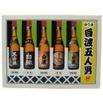 芋焼酎「さつま白波」と「白波黒麹仕込み」、「さくら白波」、麦焼酎「麦わら帽子」、米焼酎「白鯨」の5種セット。 |
