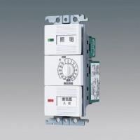 パナソニック電工社の配線器具、プレート、ハンドルなどをセットにしました。 上のスイッチはトイレの照明ON/OFF操作用 照明OFF状態は緑ランプが点灯します。 下のスイッチは換気扇ON/OFF操作用 換気扇は遅れ停止・一時動作のいずれかを選ぶことができます。 14段階で約10秒 30分の自動OFF時間設定可能。 換気扇容量:最大0.6Aまで。