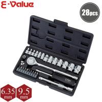 【送料無料】 藤原産業・E-Value ソケットレンチセット ESR-2038M ■特長 ■ ・六角ボルト・ナットやネジの締付け、緩め作業に。 ・二面幅4〜14mmのボルト・ナット、20種類のネジに対応します。 ・面接触加工のソケットはボルト・ナットの角に優しい仕上げになっています。 ・差込角:6.35mm 【セット内容】 ・6.35mm差込角ラチェットハンドル、ドライバー型ハンドル ・6.35mm差込角ユニバーサルジョイント、ビットアダプターソケット ・6.35mm差込角ソケット:(4・5・5.5・6・7・8・9・10・11・12・13・14mm) ・6.35mm差込角エクステンションバー:(50・100mm) ・25mmビット プラス(+0・+1・+2・+3) マイナス(-4・-6mm) ヘックス(1.5・2・2.5・3・4・5・6mm) トルクス(T8・T10・T15・T20・T25・T27・T30) ・材質:クロームバナジウム ・商品サイズ:幅245×奥130×高38mm ・商品重量:1140g |