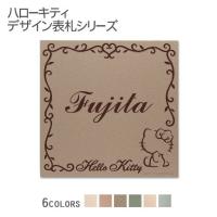 蔓で飾られたエレガントなフレームと、ちょっと色っぽいキティちゃんがかわいらしい! 黒いステンレスフレームに木目調のタイルをはめ込んだ、モダンな雰囲気の中に遊び心を取り入れた表札です。 特徴はなんといっても、タイル左下のキティちゃんの存在感! あまり見たことのないポーズがステキですよね。 ※フレームとタイルが接着された状態でのお届けとなります。