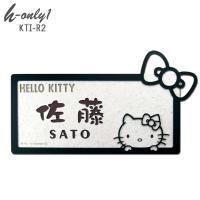 大きなリボンと、両サイドに伸びた髭が、さり気なく、かわいらしさをアピール! 黒いステンレスフレームの、モダンな雰囲気の中に遊び心を取り入れた表札です。 少し離れたところから見ても、フレームを見ただけでキティちゃんとわかるのがおもしろいですよね。