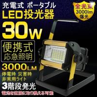 電池交換対応式、昼白色+赤と青の間で点滅 1台2役! 商品名:30W充電式LED投光器(GOODGOODS) 品番:GH30-X 製造元:グッド・グッズ 消費電力:30W ルーメン:3000LM 色温度:約6000K昼白色 充電時間:約6時間 点灯時間:約12時間 点灯モード:3モード( ハイ・ロー ・赤と青点滅) 電池容量:10800mAh 防水等級:IP65 サイズ:19.3CM(H)*12.5CM(W) 動作電圧:DC12V-24V/AC100-240V 重さ:約0.9KG 保証期間:1年(電池などの消耗品を除く) 角度調整可能 JANコード:4571461861098 セット内容:本体 * 1、ACアダプター * 1、シガーソケット * 1、18650電池 * 3 30W充電式LEDポータブル投光器です。 ・LEDフラッドライトと非常灯一体型。 ・昼白色のハイモードとローモードはフラッドライトとして使えます。 ・赤と青点滅は警告ライトと非常ライトとして使えます。 ・18650 リチウムイオン バッテリー3本付き、カンタンに取替える可能。___........ |