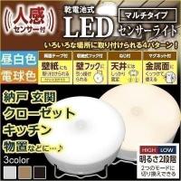 人の動きを感知してふわっと光る さまざまな場所に簡単に設置ができます。 ・カラー:昼白色相当・電球色相当 ・商品サイズ(約):直径9.5×高さ3.7cm ・重量(約):103g ・材質:ポリカーボネート ・付属品:取り付けプレート(両面テープ貼付済)、木ねじ(2本)、釘(2本) ・光源色:昼白色・電球色 ・光源:0.3W-LED×4個 ・全光束 ON:40lm AUTO Hi:40lm AUTO Lo:12lm ・感知センサー:赤外線受動式センサー ・明暗センサー:フォトセンサー ・点灯保持時間 ON:常時点灯 AUTO:10秒 (感知中は常時点灯) ・点灯モード:OFF/ON/AUTO Lo/AUTO Hi ・使用電池:単3形アルカリ乾電池×3本(別売) ・電池寿命目安(1日10回、各10秒点灯の場合) ON:15時間 AUTO Hi:12ヶ月 AUTO Lo:24ヶ月※ ※乾電池の性能、使用条件により変化します ・設置場所:室内専用 ・センサー感知距離:2.5m ・センサー感知角度 水平:100° 垂.........__ |