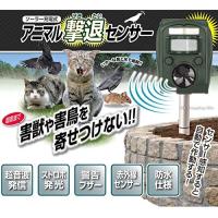 ■ソーラー充電式アニマル撃退センサー HAC1614 〇対応動物 モード1:犬・キツネ・イタチなど モード2:猫・アライグマ・アナグマ・スカンクなど モード3:鳥・コウモリ・ネズミなど モード4:夜行性動物など モード5:菜園などの多種動物に ・超音波、ストロボ発光、警告ブザーで害獣や害鳥を寄せつけない! ・センサーで感知すると自動で作動する! ・簡易防水で雨天でも使用可能です。 ・野犬や猫除け、害鳥、夜行性動物の駆除に効果的です。 ・菜園や畑、花壇やガーデニング、窓やベランダなど色々なシーンで大活躍! 【仕様】 ・本体サイズ:約W11cm×D8cm×H14cm ・本体重量:約280g ・材質:本体/ABS、支柱/アルミニウム ・電源:ソーラーパネル充電/単3型充電池×3本(テスト用電池付属) ・センサー感知範囲:約6〜8m(感知角度:約110度) ・超音波周波数:13.5〜45.5KHz