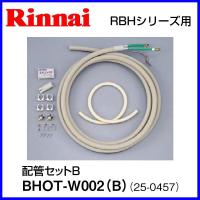 暖房温水を配管する際の樹脂管、 熱源機の暖房接続部CCHジョイント用。 配管セットB BHOT-W002(B) セット内訳 樹脂管7m、遮熱管1m、シーリングキャップ、パテ、サドル、ICHJ-B7A-1P、バンド7A ※注意※ 配管セットには、配管セットAと配管セットBがあります。 熱源機の暖房接続部の接続方法にあわせてお選び下さい。