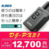 DJ-PX31の特徴 レジャー用9ch・ビジネス用11chの他、中継チャンネルを含んで合計47chに対応 幅52.8mm×高さ73.8mm×薄さ14.6mm(突起物除く)、 乾電池を含んで約64gと驚きの小型・軽量サイズ。 アンテナはヘリカルにして短縮し。 電池は内蔵式でかさばらず、単3乾電池1本の他、オプションのマルチチャージャーで最大5連結,10台の充電を可能にするNi-MH充電池にも対応。 シックな黒とスタイリッシュなシルバーの2色のボディカラー。 外部操作ボタンは電源スイッチと音量ボリュームだけ。 イヤホンはカナル・オープンエア・耳掛けフック付きからヘッドセットタイプまで、多彩なイヤホンマイクがそのまま使えて強度的にも有利な汎用2ピン式マイクジャックを採用。 受信の終わりに聞こえる耳障りな「ザッ!」音をカットするテールノイズ・キャンセラーと、無変調時のバックノイズを低減するコンパンダー(対応機種間の___........ |