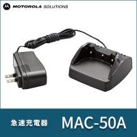 MAC-50Aは、モトローラ製のデジタル簡易無線、業務用無線に対応した急速充電器です。 専用ACアダプタが付属、バッテリー単体・無線機本体ごとのどちらでも充電が可能です。