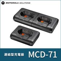 MCD-71は、モトローラ製のデジタル簡易無線MiT7000用の連結型充電器です。 付属のアジャスターを付け替えることで、バッテリーのみでも無線機本体ごとでも充電が可能です。 最大6台まで連結できます。 充電には別売の連結充電器用ACアダプターMPA-47Aが必要です。