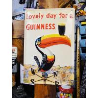 黒ビールの王様ブランド、ギネスビールのパブサインです。 普通のブリキ看板と違って、素材にはヘビースチールを使用してあるので、厚みと重量感があって、私たちブリキ看板屋が手にした時にも、「ああ、コレはイイモノだ!」って一発で分かっちゃう・・・・ そんな作りなんです。 しかも看板自体に凹凸を付けてあって、デザインの所に立体感があるので、見た目にも店舗ディスプレイに使われるようなプロ仕様的な雰囲気がガンガン伝わってくる仕上がりになっています。 こういう凝った看板って、10年くらい前はよく見かけたものなんですが、近頃はほとんど目にすることがなくなりました。 そういう意味でも今や貴重だし、デザインがこれまたギネスブランドとあって、ヨーロッパじゃないと手に入らないレアな看板ってところもコレクター心に火を点けてくれます。 同じバーでも、英国の香りのするトラディショナルな雰囲気を演.........__ |