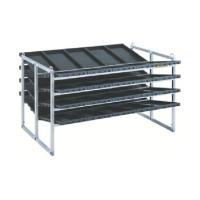 品名:苗箱収納棚 型式:NC-40K 収納枚数:40枚 棚×列×段:5×2×4 寸法:棚間隔0.16m×全長1.61m×全幅0.9m×全高0.89m 21.5kg 斜め収納専用の苗箱収納棚です。 軽トラックにピッタリと収まるサイズです。 運搬時にもっとも力の掛かるジョイント部にはアルミ型材のブロックを使用し強度を高めました。
