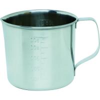 ■特長 ■口の細い容器に液体をうつす時に便利(注ぎ口付)です。 ■仕様 ■容量(ml):500 ■目盛間隔(ml):50 ■外径(mm):100 ■高さ(mm):90 ■口付 ■取手付 ■目盛間隔:50ml ■材質/仕上 ■ステンレス(SUS304)