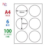 ラベルサイズ 85.0mm×85.0mm 正円形 6面付 1袋 A4サイズ 100シート入り |