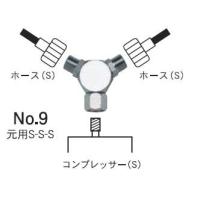 大型コンプレッサーから分岐して複数のハンドピースを使用する場合や、1人用の小型コンプレッサーでも複数(同時使用は不可)のハンドピースを分岐し交互に使用する時にも便利です。 |