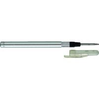 【メーカー】 ■トラスコ中山(株) 【仕様】 ■全長(mm):140 ■直径(mm):9 ■最大打力(N):98 ■摘要:S型ケガキ兼用 ■先端角度(°):75 ■硬度:HRA87 【材質・仕上げ】 ■先端部:超硬チップ(G5) 【質量】 ■33G |
