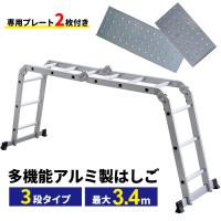 足が曲がってハシゴから脚立・足場まで便利に使える多機能はしごです。 耐荷重100kgで丈夫です! アルミ製なので軽量、しかも小さく折り畳めるので車や倉庫に積みこみやすい。 ロックの解除は両側のレバーを起こすだけなので女性の力でも大丈夫! コンパクトなのに、ハシゴにすれば337cm、脚立にすれば165.5cmになります。 ワゴン車など高い車の洗車や壁の塗装、庭木の手入れに重宝すること間違いなし! ※安全にご使用頂くため、必ず説明書をよくお読みください ※安全ロックがかかっていることを確認してからお使いください 【商品詳細】 サイズ(約): 折り畳み時:幅89.5×奥行き34.6×高さ27cm ハシゴ時:高さ 337cm 脚立時 :高さ 165.5cm 足場時 :幅 222cm 高さ 94.5cm ※詳しくは画像をご参照ください。 足場幅(約):34.5cm ステップ高(約):27cm 材質:アルミニウム、ABS樹脂、TPR 重量:10.5kg 耐荷.........__ |