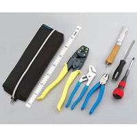 ■メーカー ■ホーザン(株) ■仕様 ■ケース寸法(mm)間口×奥行×高さ:300×50×100 ■セット内容(点):7 ■セット内容・付属品 ■マイナスドライバー5.5 D-255-100 、電工ドライバーNo.2 D-332-100、ペンチ P-43-175、圧着工具 P-77、ウォーターポンププライヤー P-244、電工ナイフ、布尺、ツールポーチ ■質量 ■1.5KG