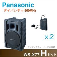 WS-X77(Hセット) こちらの商品は ・ワイヤレスパワードスピーカー(WS-X77)(800MHz)、 (ワイヤレス受信機 2台内蔵) ・ワイヤレスマイク(タイピン型) 2本 (WX-4300B x 2) がセットになった、お買い得セット商品です。 - ※購入後の交換等はできませんのでセット内容・仕様をご確認ください ■800MHz帯PLLワイヤレス受信機を2波内蔵。 ■ワイヤレスマイク2波受信に有線マイク、ライン入力を加えた合計4入力。 (有線マイク2本使用時は、ワイヤレスマイク1波とライン入力1つになります。 ) ■60Wアンプ内蔵。 最大111dB/mの大音量。 ■20cmウーハーとホーンツィーターの2ウェイ。 ■AC電源100V 50/60Hz が必要。 ■スピーカースタンドにも簡単設置可能。 ■内蔵のアンテナはダイバシティ方式で、高い受信安定性を実現。 屋内___........ |