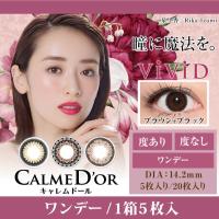 ■販売名:CalmeD'or 1day vivid(ー ― ) ■商品区分:1日使い捨て・単回使用視力補正用色付、単回使用非視力補正用 ■交換期限:開封後1日使い捨て ■ー:+/+ ■枚数:5枚入り/1箱 ■BC:8.7mm ■DIA:14.2mm ■度数(POWER):±0.00 -0.25〜-6.00(0.25Dstep) ■医療機器承認番号:22400BZX00327A27 ■販売元:株式会社