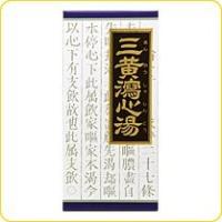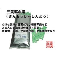 三黄瀉心湯 (さんおうしゃしんとう) 松浦漢方株式会社 体力中等度以上で、のぼせ気味で顔面紅潮し、精神不安、みぞおちのつかえ、便秘傾向のあるものの次の諸症: 高血圧の随伴症状(のぼせ、肩こり、耳鳴り、頭重、不眠、不安)、鼻血、痔出血、便秘、更年期障害、血の道症 ※効能・効果に関連する注意 注)血の道症とは、月経、妊娠、出産、産後、更年期など女性のの変動に伴って現れる精神不安やいらだちなどの精神神経症状および身体症状のことである。 1日3回を食前又は食間に水又は温湯で服用。 大人(15才以上) 1回1 包(2.0g) 15才未満7才以上 1回2/3包(1.3g) 7才未満4才以上 1回1/2包(1.0g) 4才未満2才以上 1回1/3包(0.7g) 2才未満 1回1/4包(0.5g以下) 本品3包(6.0g)又は6.0gは ………………___........ |