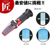 手持屈折計 糖度 SK-102R 測定範囲 0~18% 規格:[糖度 SK-102R] 外径寸法()×全長約:29×195mm ■10℃?30℃間の自動温度補正機能付なので温度を気にせず正しい測定が出来ます。 ■見やすい目盛 ■本体の軽量化でおどろくほど持ちやすい。 糖度とは :糖度とは、例えば果汁100gの中に糖分が何g含まれているかを表わします。 百分率ですので単位は%です。 果物の甘さ(糖度)では「度」と表すこともあります。 濃度とは:ーー、ー、たれなどは糖分の他に塩分、酸、などが溶け込んでいます。 これら溶け込んでいるもの全てを合算して可溶性固形分と称しています。 濃度とは、例えばー100gの中に可溶性固 型式SK-102R測定範囲Brix 0.0 〜 18.0% 最小目盛 Brix 0.1%温度範囲10 〜 30℃寸法・質量約29 約195mm 約120g [04-0515-0103] |