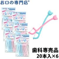 商品名:ー ちゃん 20本入 ×6個子供のために作られたFlossちゃん ■子供が遊んでも危険の少ないように尖った部分を無くし可愛いーでーしました。 ■ーは乳歯に合う小さめのです。 ■少しやわらかめの素材なのでの部分を曲げて 使うことができ、臼歯部の清掃も届きます。