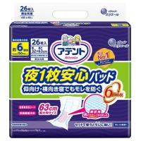 税抜3695円以上送料無料/ 夜1枚安心 仰向け・横向き寝でもを防ぐ 6回吸収 26枚入/日用品[生理用品/尿もれ用ー・/尿もれ用ー・ 多量・長時間用]/:/販売元:大王製紙/内容量:26枚/:幅32×長さ63cm/原産国:日本/肌への接触面積を低減する「お肌ふわさらー」でふわふわやわらかく快適な尿もれ用です。 逆戻りも防ぎ、朝まで肌さらさら。 仰向け・横向き寝などの姿勢でもに安心。 ーに、前後がわかりやすく体の中心に合わせやすい「矢印ー」入り。 全面通気性ー採用。 消臭加工。 医療費控除対象品。