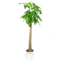 観葉植物、パキラ(朴)8号鉢(直径24cm)受皿付。 高さ約140cm。 ・パンヤ科、パキラ属 ・別名:カイエンナッツ ・学名:Pachira aquatica ・原産地:熱帯アメリカ(メキシコ、ギアナ、コスタリカなど)。 ・分類:常緑小高木。 ・暑さと乾燥には強い木です。 寒さには弱いので、冬は5〜7℃以上必要です。 ・日光を好む木ですが、明るい日陰でも丈夫に育ちます。 ただし、光量が不足すると徒長するので、グリーンインテリアとして利用する場合は、場所を変えて光を補います。 ・伸びすぎてバランスが悪くなったら、低めに剪定して明るい所に置けば、6〜9月なら、切り口のすぐ横から新葉が出て、2ヶ月くらいで美しくなります。 ・生育期は鉢の表土が乾いたら水をやります。 冬は表土が乾いてから、数日待って水をやります。 気温の低い時期に過湿が続くと、根腐れを起こすので、乾くのを待___........ |