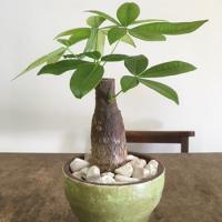 ポッコリした幹が可愛いんです♪ 科目:パンヤ科/属名:パキラ属/別名:カイエンナッツ/花言葉:快活/非耐寒性常緑小高木 耐寒温度約5℃ (環境・生育状況により変わります) 撮影日:2016/7/04 財を発する縁起の良い木として重宝されています。 パキラは熱帯アメリカに自生する高木で、ナッツを採るために台湾などで果樹として栽培されていて、カイエンナッツいう別名もあります 明るい場所を好みます。 できるだけ日当たりの良い室内で育てるようにしましょう。 鉢径:19cm(プラスチック) 樹高:約60cm 全高:約80cm |