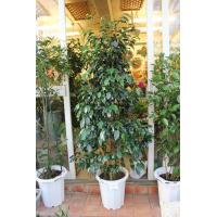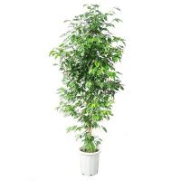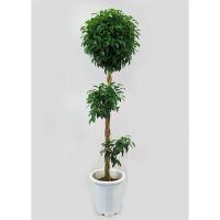 観葉植物 ベンジャミン (スタンダード仕立て) トピアリー 10号A(径30cm)、受皿付。 鉢底から高さ約180cm。 ・クワ科フィッカス属。 ・熱帯、亜熱帯アジア原産。 ・学名:Ficus benjamina。 ・光沢のある小さい葉が美しいベンジャミンです。 ・ゴムの仲間で葉を折ると白い樹液が出ます。 インドなどでは街路樹に使われ、日光を好みます。 ・健康に育てるには三つのポイントがあります。 ・一つ目は、窓際など、できるだけ明るい所に置くことです。 光量が不足すると落葉します。 ・二つ目は、急激な温度変化を与えないことです。 冷房の風を直接当てると落葉する原因になるので、空調の吹き出しから遠いところに置きます。 ・三つ目は、風通しです。 締め切った部屋ではカイガラムシが発生し易く、放置するとベタベタの分泌液を出し、それに黒いカビが生えます。 風通.........__ |
