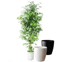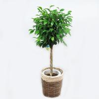 観葉植物、ベンジャミン・ボサ7号(径21cm)、鉢カバーかご、受皿付、鉢底から高さ約100cm。 ・クワ科フィッカス属。 ・熱帯、亜熱帯アジア原産。 ・学名:Ficus benjamina。 ・光沢のある小さい葉が美しいベンジャミンです。 ・ゴムの仲間で葉を折ると白い樹液が出ます。 インドなどでは街路樹に使われている樹で、日光を好みます。 ・健康に育てるには三つのポイントがあります。 ・一つ目は、窓際など、できるだけ明るい所に置くことです。 光量が不足すると落葉します。 ・二つ目は、急激な温度変化を与えないことです。 冷房の風を直接当てたりすると落葉する原因になるので、空調の吹き出しから遠いところに置きます。 ・三つ目は、風通しです。 締め切った部屋ではカイガラムシが発生し易く、放置するとベタベタの分泌液を出し、それに黒いカビが生えたりします。 風通.........__ |