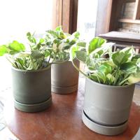 送料無料!6色から陶器の色を選べる! 【商品内容】 ミニ観葉植物 ポトス陶器鉢付き(ハイドロカルチャー) x 1 陶器鉢付き 【商品サイズ】 商品全体の高さ:約15cm〜25cm前後 陶器鉢 高さ:約8.5cm 幅:約10cm ※植物につき、高さや形状には誤差がございます。 あらかじめ、ご了承くださいませ。 育てやすいハイドロカルチャー(水耕栽培)の観葉植物です。 ミニサイズなので、色んな場所に置け、インテリアとして楽しむことができます。 土ではなくハイドロコーンという発泡煉石を使用しているので清潔です。 ポトスは生長するとツルが伸びていき垂れ下げたり、上に伸ばしたり様々な仕立てを楽しむことができます。
