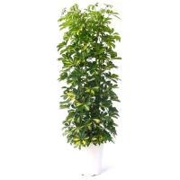 観葉植物、ホンコンカポック(シェフレラ)8号鉢(直径24cm)。 受皿付。 高さ約100-120cm。 ・ウコギ科シェフレラ属。 ・原産地:台湾 中国南部 ・学名:Schefflera arboricola。 ・ホンコンカポックの斑入り種で、明るい印象の葉です。 ・置き場:慣らせばかなり耐陰性がありますが、明るい所に置いた方が、丈夫な樹に育ちます。 光量が不足すると、徒長したり、葉が黄色くなったりします。 ・耐寒性:寒さにも強く暖地であれば屋外で冬を越すこともありますが、最初の冬は、部屋の最低温度が3度以上の場所に置き、表土が乾いてから3〜5日待ってから水をやり、乾かし気味の管理をします。 ・水やり:比較的乾燥に強い樹で、夏でも水をやり過ぎると根腐れするので、表土が乾いてから水をやります。 ・葉水:土にやるのとは別に、霧吹きで葉水をあげて、空中湿度を保って下さい。 害虫予防にも.........__ |