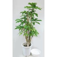 観葉植物、ホンコンカポック(シェフレラ)8号鉢(直径24cm)。 受皿付。 高さ約90〜120cm。 ・ウコギ科シェフレラ属。 ・原産地:台湾 中国南部 ・学名:Schefflera arboricola。 ・置き場:慣らせばかなり耐陰性がありますが、明るい所に置いた方が、がっちりした樹に育ちます。 光量が不足すると、徒長したり、葉が黄色くなったりします。 ・耐寒性:寒さにも強く暖地であれば屋外で冬を越すこともありますが、最初の冬は、部屋の最低温度が3度以上の場所に置き、表土が乾いてから3〜5日待ってから水をやり、乾かし気味の管理をします。 ・水やり:比較的乾燥に強い樹なので、夏でも水をやり過ぎると根腐れすることがあるので、表土が乾いてから水をやります。 ・葉水:土にやるのとは別に、霧吹きで葉水をあげて、空中湿度を保ってください。 害虫予防にもなり、葉も生き生きします。 ・肥___........ |