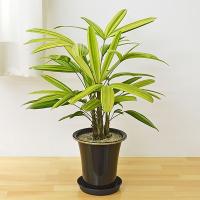 観葉植物、カンノンチク(観音竹)達磨 、だるま、 8号鉢(直径24cm) 受皿付。 高さ約70-80cm。 ・ヤシ科ラピス属、中国南部原産。 ・学名:Rhapis excelsa。 ・冬越しの温度:0〜2℃以上 ・観音竹は日本で古くから観葉植物として利用されています。 落ち着いた雰囲気で棕櫚竹より葉が広く、茎がたくさん出るのでボリューム感があります。 和風のイメージが強いのですが、洋風の住宅、オフィスにも合います。 ・達磨は「緑の宝石」などと呼ばれ、流通しています。 成長が比較的緩やかで、室内観葉としては、都合が良いです。 ・寒さに強く木造住宅でも十分冬越しできますが、厳冬の年は油断しないでください。 ・弱光にも耐え、病害虫もあまり発生しないので非常に育て易い観葉植物です。 夏は半日陰に置きますが、日照不足では弱ります。 ・水切れに注意し、土が乾いたらしっかりとやり___........ |