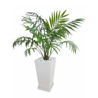 観葉植物、ケンチャヤシ7号鉢(直径21cm)。 受皿付。 鉢底から高さ約90〜110cm。 (季節により高さは変動あり) ・ヤシ科チャメドレア属 ・学名:Howea belmoreana ・オーストラリア東部原産。 ・越冬温度0℃以上。 霜や雪に当たると葉が痛むので注意 ・生育適温は18〜30℃。 ・株立ちせず、単幹性で高さ7m以上になります。 大きくなると一枚の葉の長さが2mを超える事もあります。 大鉢は広い空間に置くと、南国気分を容易に演出できます。 ・羽状の葉は濃い緑色で、エキゾチックです。 ・耐寒性、耐陰性があるので、初心者にも管理が楽な育てやすい植物です。 ・耐陰性はありますが、ずっと室内に置くと軟弱になるので、明るい場所に移動して下さい。 外に出すときは、軒下に出して徐々に外光に慣らします。 急に強光に当てると葉焼けするので、注意して下さい。 ・ヤシ類は基本的.........__ |
