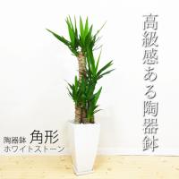 種類 ユッカ鉢の素材 白色陶器 受皿付size 高さ:約40cm 幅:約25cm(葉の広がりを含むおよその寸法) 幹の太さ:直径 約4〜5cm置き場所 場所:室内・室外OK 日光:日向〜日陰 温度:5℃以上 明るい場所〜半日陰で育てます。 日によく当てれば葉の色が濃く、大きな葉っぱに成長します。 冬は室内で管理してください。 窓から少し離れた、部屋の中程でも管理できます。 ※夏場は必ず直射日光を避けた半日陰で管理してください。 水やり 回数:月2〜3回程度 分量:500mlのペットボトル半分程度 土が乾いてからたっぷりと与える。 十分に湿りのある時は必要なし。 ※年間を通して霧吹きで葉水を与えると良いです。 ・プレゼントにも最適!お喜びを頂けること間違いなし! ■ 付属品土の表面を覆い隠す化粧石(天然石イエロー)植木鉢同色の陶器製 受け皿育て方のマニュ.........__ |