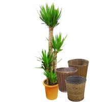 観葉植物、ユッカ(青年の樹)8号鉢(直径24cm)。 籐かご、受皿付。 高さ約110-120cm。 ・学名:Yucca elephantipes。 ・リュウゼツラン科。 ・メキシコ原産。 ・初心者におすすめの育てやすい樹です。 ・日光を好む木なので、一年中、明るい場所に置きます。 室内の日陰に置いても枯れることはありませんが、徒長し、葉色が悪くなりますので、窓辺や、照明の下へ移動します。 ・乾燥には強いので、鉢の表土が乾いてから水をやります。 木物(ぼくもの)スタイルに仕立てられているため、最初は根が少ないので、過湿にすると根腐れします。 冬は特に水やりに注意が必要です。 夏を越すと根が伸びて、根腐れにくくなります。 ・鉢への水やりとは別に、霧吹きで葉水を与えてください。 ・気温の高い時期は、外へ出してシャワーをかけると木が喜びます。 また、ハダニ発生___........ |