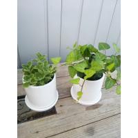 ミントの香りのアロマティカス陶器鉢と、 ハートの葉っぱがかわいいアイビーのセットです 2、3枚目の写真のように陶器鉢にポットをいれています。 高さは9センチの受け皿つき陶器鉢です 管理方法と一回分の肥料を一緒におつけします。 寒い地域の方は冬は輸送中凍る恐れがありますので、暖かい時期にお願いいたします 写真はイメージですが厳選して良いものを発送いたします。 ご希望でお任せ3寸観葉植物を1つプレゼント |